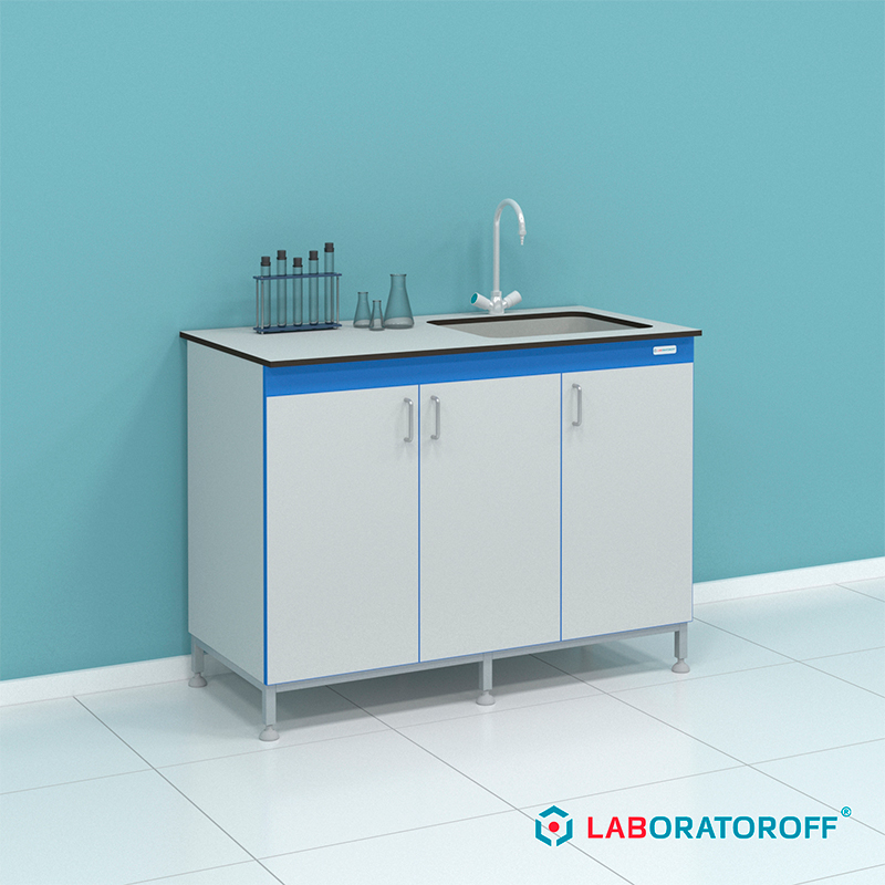 Мойка лабораторная с глухими дверцами и чашей из полипропилена СТ.МЛП.120.60.90