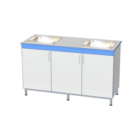 Мойка лабораторная с глухими дверцами и двумя чашами из полипропилена СТ.МЛ2Н.150.60.90
