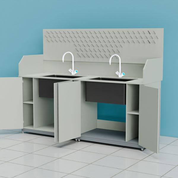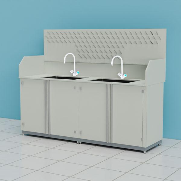 Стол-мойка кислотостойкий ПП.МЛ2П.210.68.90 с защитным экраном, сушильным стендом и смесителями