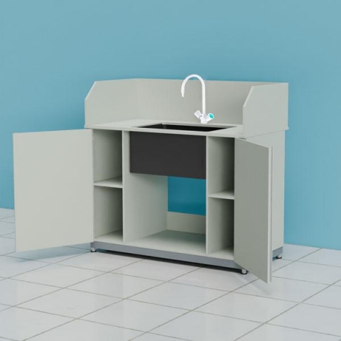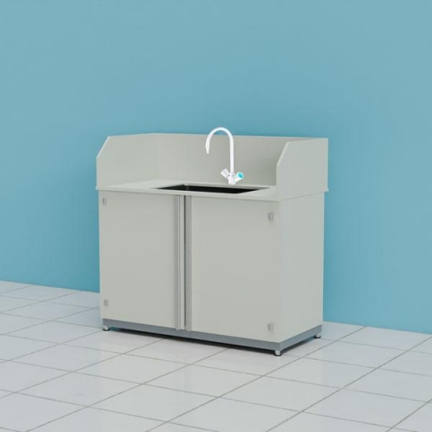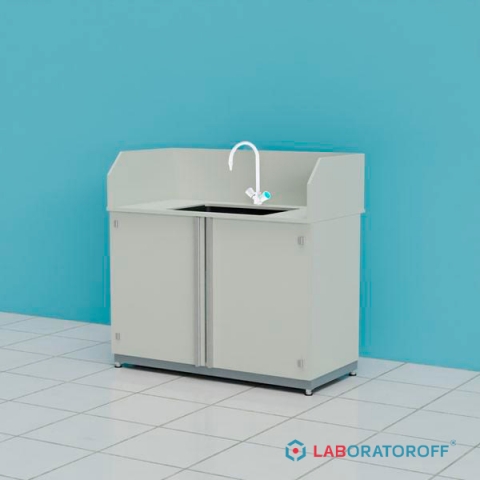 Стол-мойка кислотостойкий ПП.МЛП63.130.68.90 с защитным экраном и смесителем