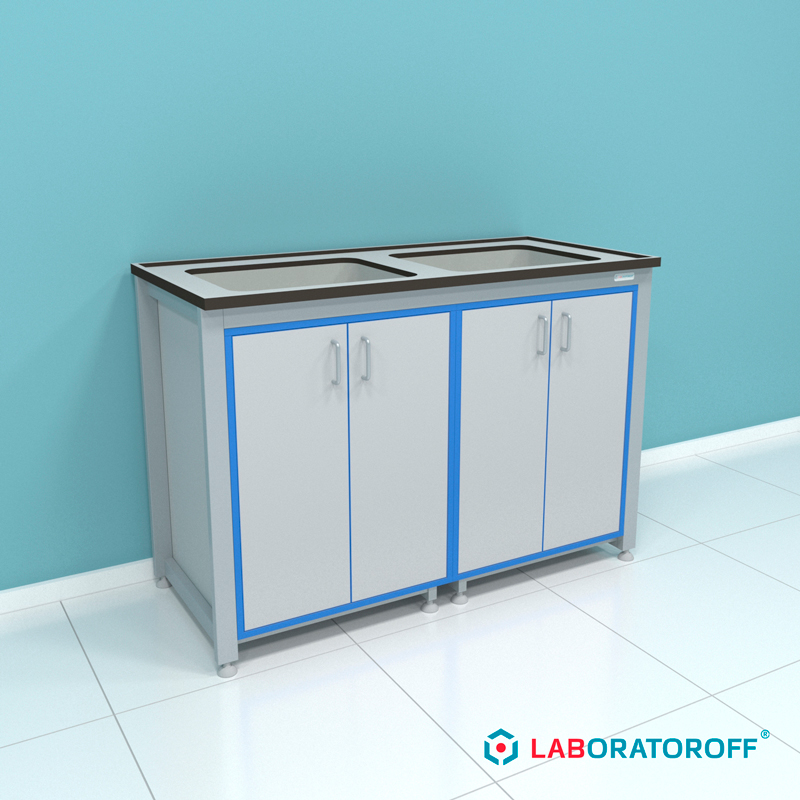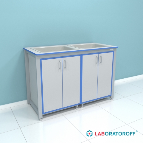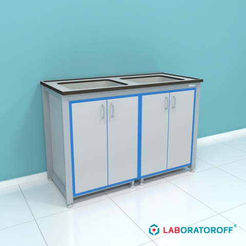 Стол-мойка лабораторный ПР.МЛ2П.130.60.90 серии "Прагматик" (раковины из полипропилена)