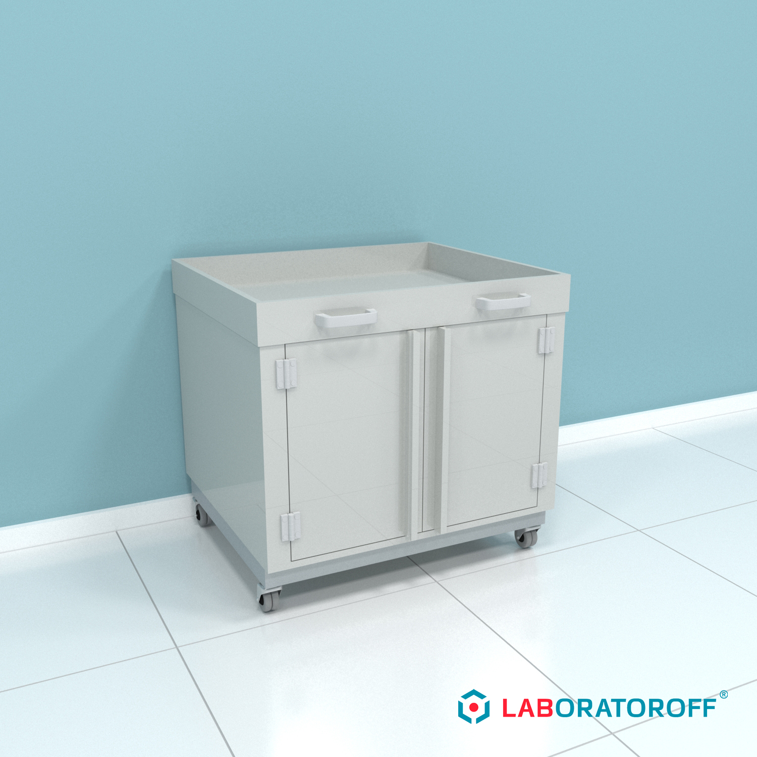 Тумба подкатная для перелива кислот с распашными дверцами ПП.ТПК.164 (под вытяжной шкаф ПП.ШВХ.164)